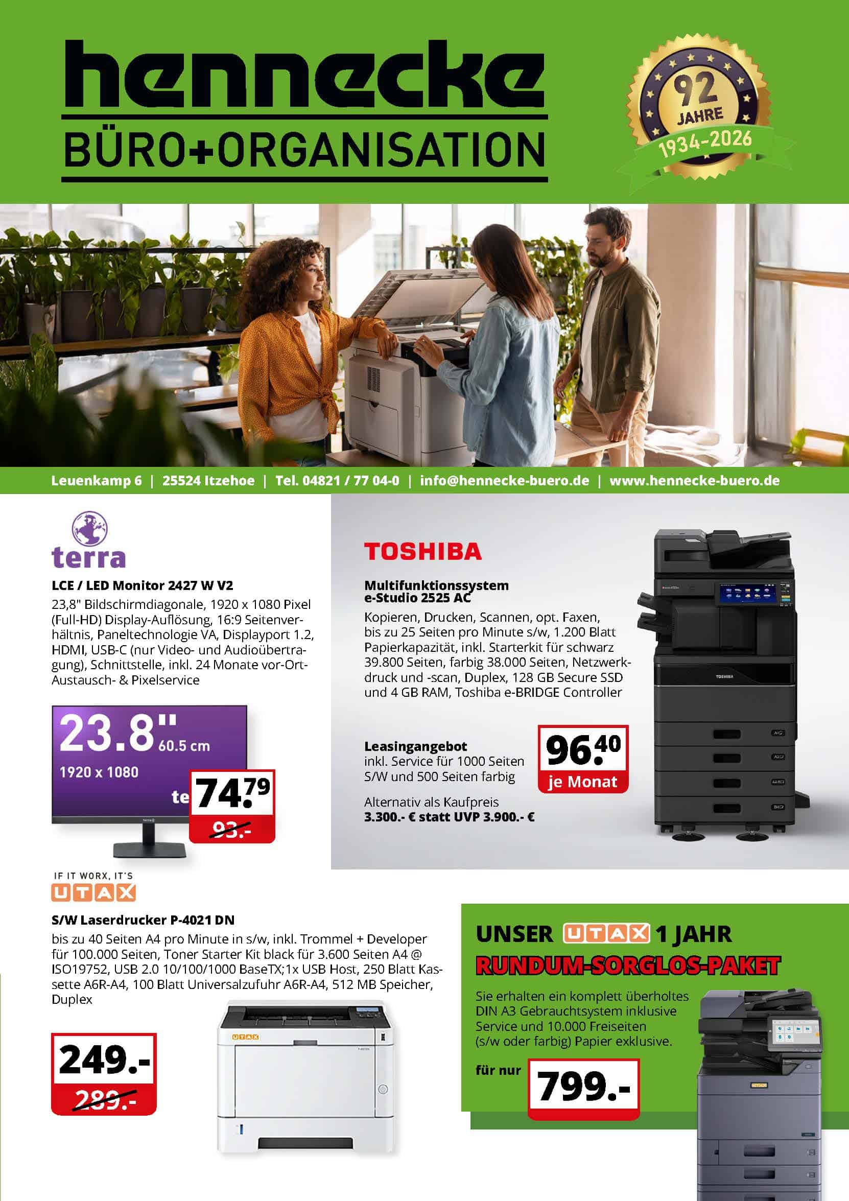 Unser technischer Kundendienst ist täglich für Sie da – in unserer Werkstatt oder direkt bei Ihnen vor Ort. Durch regelmäßige Schulungen bleibt unser Team stets auf dem neuesten Stand. Als autorisierte Vertragswerkstatt für Utax, Toshiba und Brother übernehmen wir Wartung und Reparaturen, auch für andere Marken. Gerne erstellen wir günstige Wartungsverträge, um Ihren Betrieb reibungslos am Laufen zu halten. Verlassen Sie sich auf unseren zuverlässigen Service.