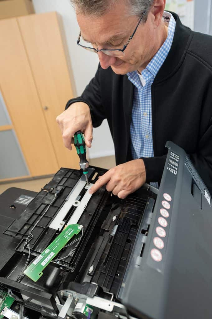 Als autorisierte Vertragswerkstatt für Utax, Toshiba und Brother kümmern wir uns um Wartung und Reparatur, auch für Geräte anderer Hersteller.
